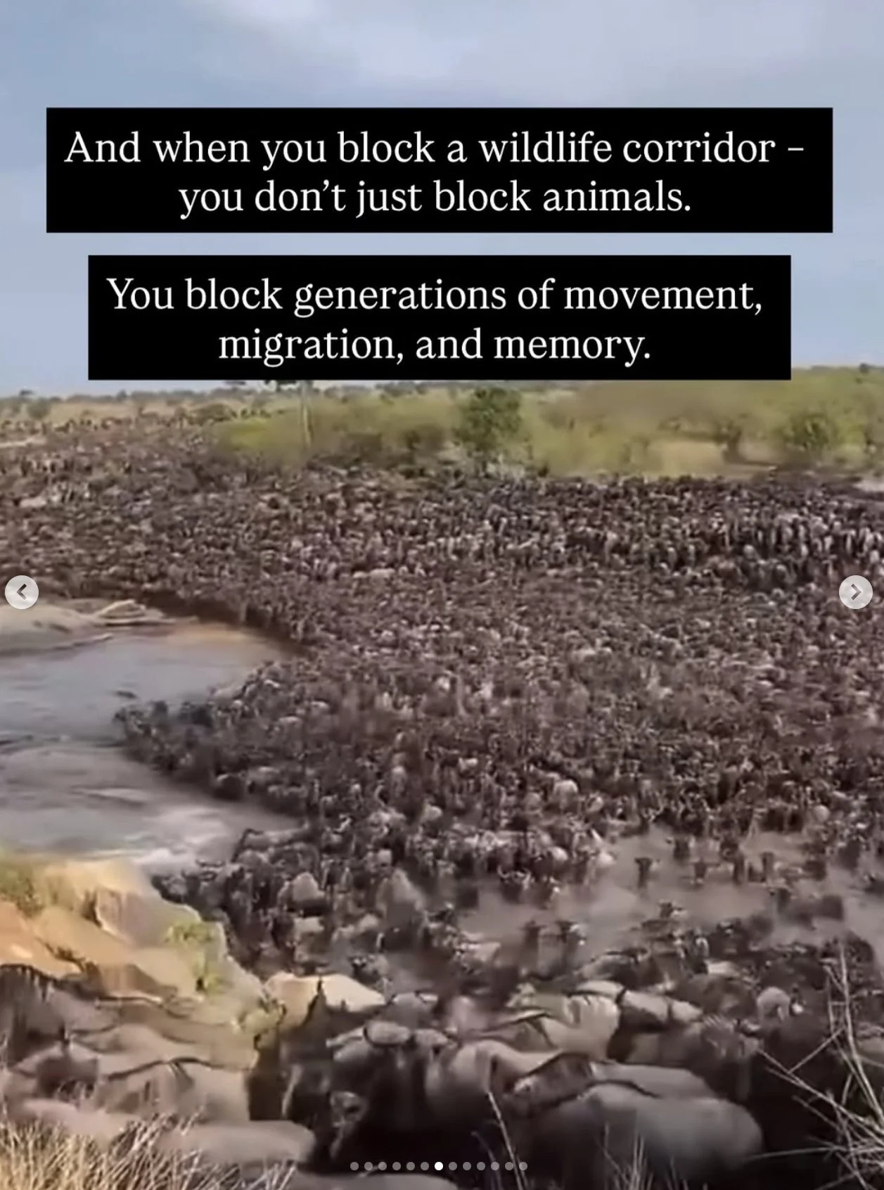 When a corporation builds directly inside this pathway, it does not simply alter a landscape; it interferes with a rhythm that has shaped life for thousands of years. Construction noise pushes herds away. Lights disorient nocturnal species. Increased vehicle traffic fractures routes. Soil disruption affects breeding grounds. And once the land’s integrity fractures, the entire cycle weakens.